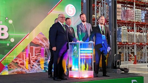 Открываются ворота, выдвигается манипулятор. Первый после торжественного открытия символический паллет выгружается и устанавливается на стеллаж – под аплодисменты гостей и сотрудников. Старт дан.